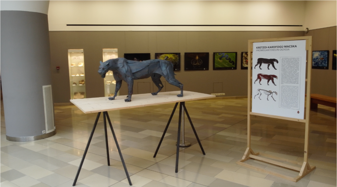 Promegantereon shared its habitat with the much larger, lion sized sabertothed cat machairodus, as well as large hyenas, bear dogs, giant pigs and other ferocious, late Miocene fauna. Promegantereon, much like today’s leopards had to be swift and live in the shadows of much larger than itself.